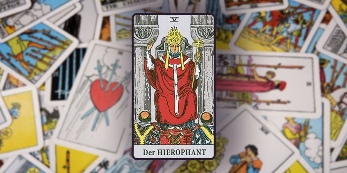 Die Tarotkarte der Hierophant ist die fünfte der auch als große Arkana bezeichneten Trumpfkarten. Er lehrt unabhängig vom Glauben seine Religion und begünstigt Aspekte von Freundschaften und Finanzen. Der Meister des Spirituellen unterstützt beim Erkennen der wahren Berufung, fördert Treue und begünstigt neue Bindungen.