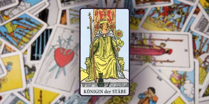 In der Tarotkarten Bedeutung ist die Königin der Stäbe Sinnbild für Entschlossenheit und Unabhängigkeit. Die erste echte Personenkarte der Stabserie vereint Freiheitsliebe, Leidenschaft, Scharfsinn. Doch die Stabkönigin hat auch Schattenseiten.