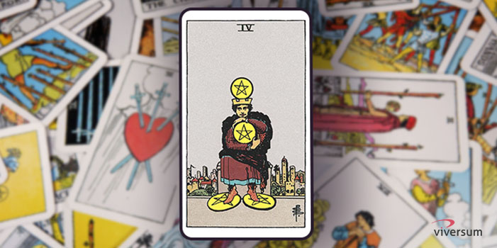 Die Karte Vier der Münzen zeigt einen Mann, der sich mit aller Macht an seinen Besitz klammert. Was will Ihnen diese Tarotkarte sagen?